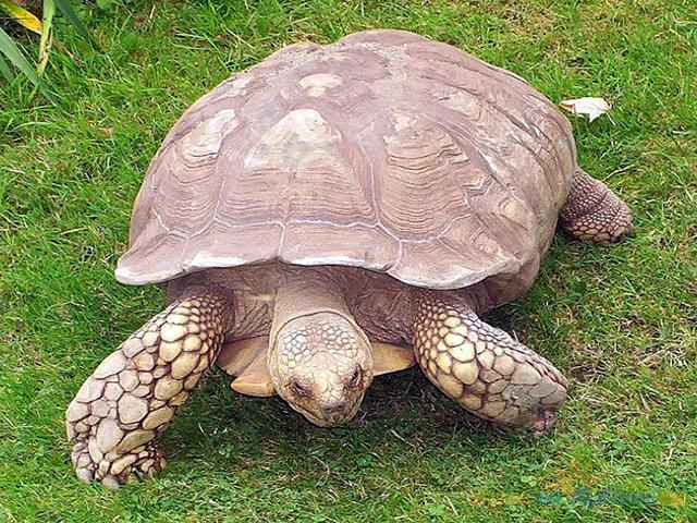 Шпороносная черепаха – третья по величине сухопутная черепаха в мире после слоновой и гигантской черепах. Массы тела достигает 106 кг. Численность черепах оценивается в последние годы снижается вследствие сокращения пригодных мест обитаний и интенсивного промысла.
