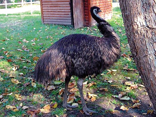 Внешне эта птица несколько напоминает казуара, но не имеет ни "шлема", ни кожистых выростов на шее. Длина его около полутора метра, весит до 60 кг. Эму способен бежать со скоростью 50 км/ч. Он не любит купаться в песке, предпочитает воду, причем неплохо плавает, несмотря на свои массивные размеры.