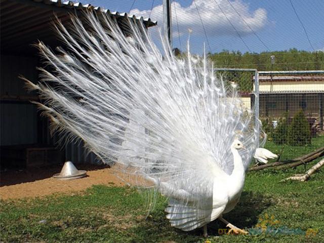 Белый павлин очень красив, но он является генетически мутированным. Размер самца около 120 см, размер хвоста – до полуметра, вес – до 5 кг. Самка меньше по размеру и не имеет такого красивого хвоста, как у самца. Многообразие внешнего вида павлинов является всего лишь результатом различных вариантов окраски обыкновенного павлина.