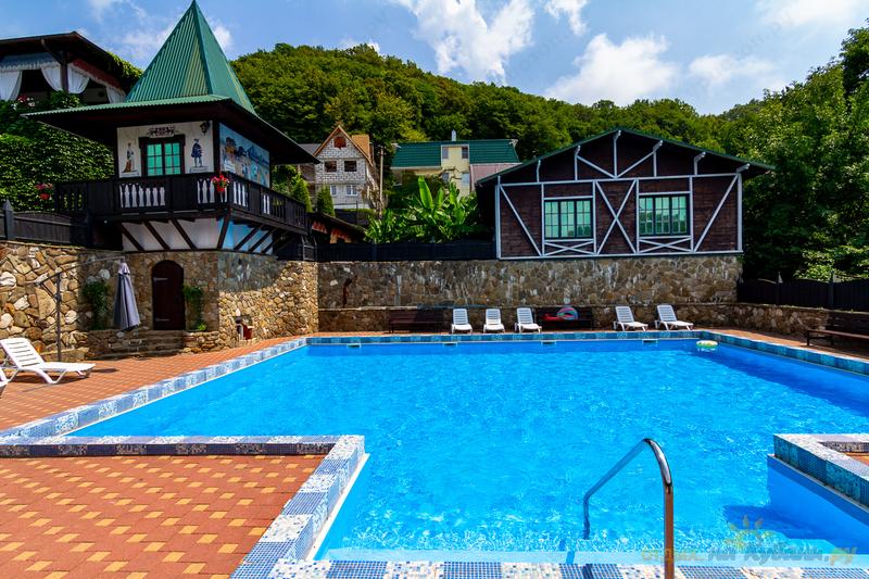 При строительстве гостиничного комплекса заимствовали лучшее из опыта зарубежных коллег: локацию в зеленой зоне (непосредственно в горах), густую растительность на территории, высокий уровень эстетики.
