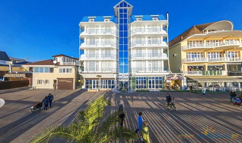 Жили в гостинице «Шторм». Отель «три звезды». Для простого, демократичного отдыха вполне прилично. Номер был безупречен: сплит-система работала как часы, в номере регулярно производилась уборка, менялись полотенца. Персонал хоть и не отличается изысканными манерами, но вежлив, старателен. Напоминаю, гостиница «три звезды». Серьезный минус – часто барахлил лифт, но администратор с искренней извиняющейся улыбкой сглаживал неудобство. Жара стояла невыносимая, техника перегревалась, подводила. Завтрак – «шведский стол». Все вкусно, выглядело свежим (уж не знаю, как на самом деле), все аппетитно. Особенно хороша была творожная запеканка! Своего пляжа у отеля нет, есть место для шезлонгов на «втором этаже» над общим пляжем. До воды далековато. Не хочешь загорать там, занимай место под солнце ни свет, ни заря у воды на общем пляже. Иногда это напрягало. Но гостиница в этом не виновата.