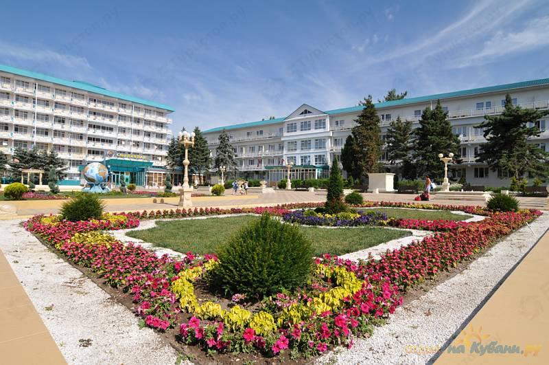 Отдыхающие размещаются в номерах со всеми удобствами, обеспечиваются трехразовым питанием по системе "шведский стол". Имеется собственный благоустроенный пляж с двухуровневым солярием и аэрарием, расположенный в 50 метрах от жилых корпусов. Также к услугам отдыхающих два бассейна: открытый – на территории и закрытый – в здании основного корпуса, охраняемая автостоянка, камера хранения, индивидуальные сейфы, аптека, детская комната с дежурным воспитателем, игровые площадки, библиотека, бильярдная, кинозал, кафе, ночной ресторан на берегу моря, парикмахерская, косметический кабинет, тренажерный зал, спортивные площадки.