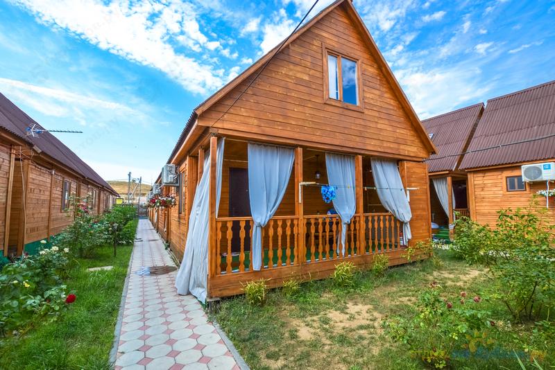 Деревянные домики, со всеми удобствами, расположенные в 100 метрах от моря. На территории: общая кухня, мангальная зона, детская площадка, парковка, бесплатный доступ в Интернет.