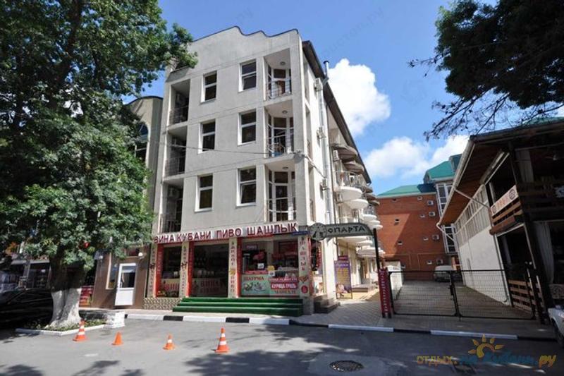 Гостиница "Спарта" расположена в центральном районе села Дивноморское, в 200 метрах от пляжной территории курорта. На первом этаже здания работают салон красоты, кафе и магазин.