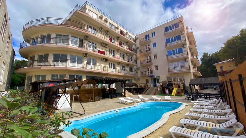В составе гостиницы 2 здания без лифтов, состоящие из пяти этажей. Территория при гостинице окружена ограждением, оборудована игровой площадкой и бассейном для маленьких туристов. В уютном дворике гостиницы установлены скамейки для отдыхающих, а также небольшой магазинчик, реализующий мороженое и прохладительные напитки. Парковая зона порадует отдыхающих шашлычной, в которой подают отменный шашлык, люля-кебаб, запеченные на костре овощи и прочие блюда "с дымком".