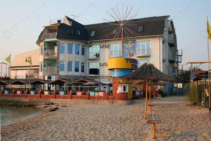 Клуб-отель "Торнадо" – это современный спортивно-развлекательный комплекс на берегу Азовского моря. Для отдыха отель "Торнадо" предлагает 30 номеров евро класса, выполненных в морской тематике. Инфраструктура включает ресторан, летнее кафе, лобби-бар, клуб виндсерфингистов и разнообразные водные экстремальные аттракционы, ночной клуб, дискотеку, аквадискотеку, открытый мини-бассейн, сауну. Все развлечения клуба-отеля "Торнадо" рассчитаны на молодых и жизнерадостных людей – почитателей водного экстрима и ночного отдыха!