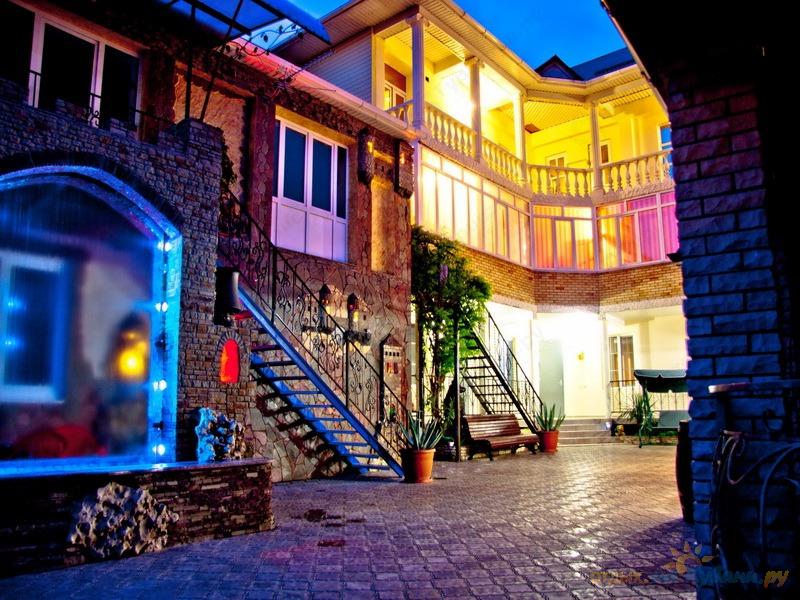Гостевой дом состоит из двух трехэтажных корпусов, состоящих из 26 номеров категорий "Стандарт" и "Люкс". Уютный двор с огороженной территорией. Есть кафе и место