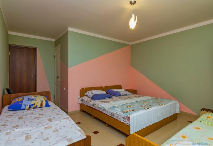 В номере: односпальные кровати, шкаф, стол, телевизор; санузел и душ.