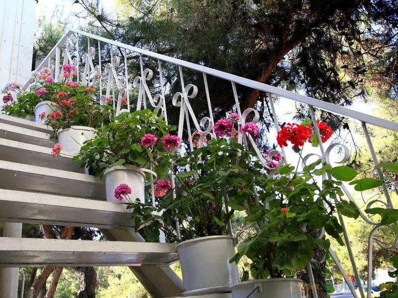 Частный дом располагается в парковой зоне. Воздух здесь чист и напоен ароматом хвои и свежестью моря. Весь двор частного дома и лестницы уставлены горшками с розовыми, белыми и алыми цветами, которые так радуют глаз. Двор увит виноградом, который дает приятную тень, спасающую от летнего зноя.