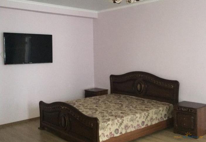 Номер оформлен в современном стиле, кровать двуспальная 180 на 200, две прикроватные тумбочки, шкаф, трюмо. Дополнительное место - диван 140 на 200,телевизор ж/к 64 диагональ, сейф, фен. Кухня полностью оборудована: холодильник, печка, микроволновка, посуда, кастрюльки, вилки, ложки, чайный набор, графин и стаканчики, электрочайник, стол со стульчиками. Ванная комната с ванной, зеркало, на каждого проживающего гостя предоставляется мыло, шампунь, туалетная бумага. По просьбе предоставляется детская кроватка. Отдельный вход.