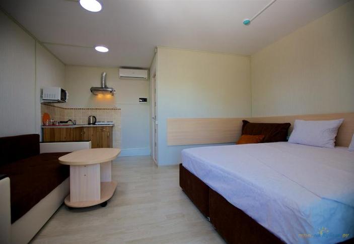 В номере:двуспальная кровать, диван, кресло-кровать, шкаф, прикроватные тумбочки, кухонный гарнитур, посуда, обеденная зона, телевизор, Wi-FI