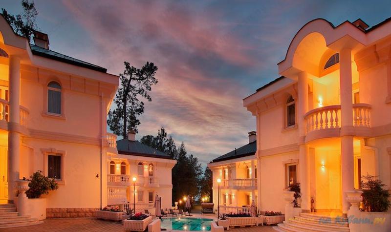 На зеленой территории парка, насажденной южным реликтовыми и экзотическими растениями, разместились четыре двухэтажные виллы, которые объединены открытым подогреваемым бассейном. Виллы отличаются по цветовой гамме и стилю – Лиловая, Лазурная, Золотая и Зеленая. В виллах изысканный интерьер, итальянская мебель, люстры из муранского стекла.