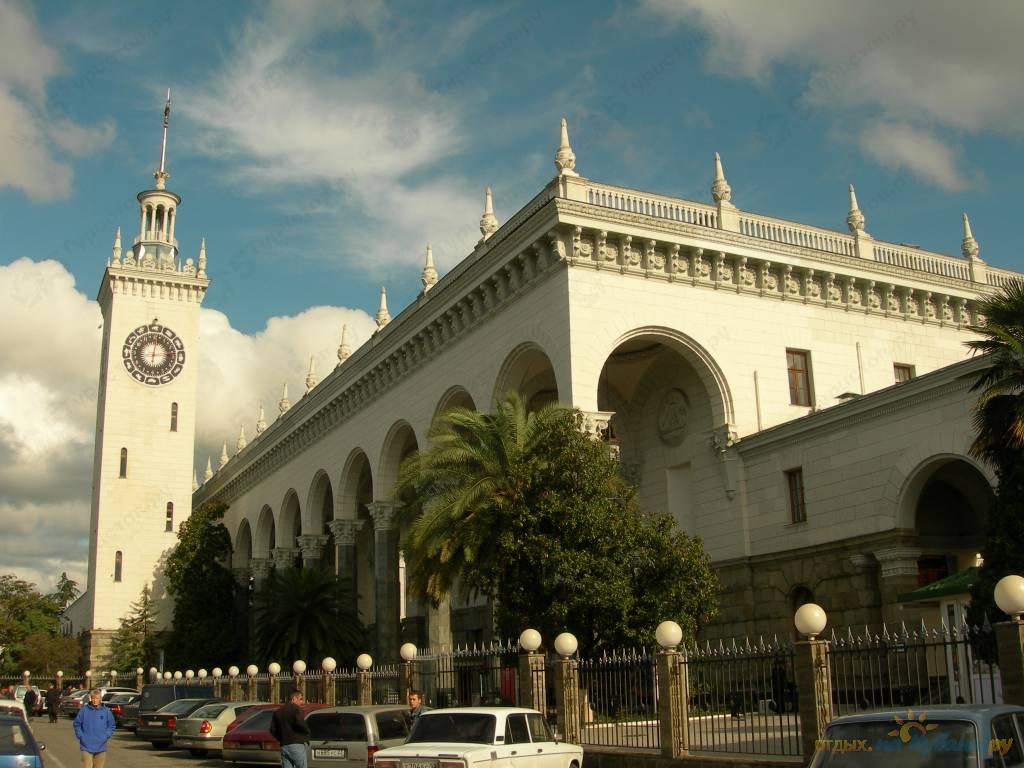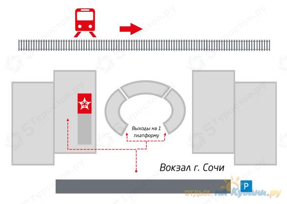 Для строительства железнодорожного вокзала Сочи выбрали очень удачное место. Рядом находится рынок и морской вокзал Сочи, а также пляжи и гостиницы Сочи, что очень выгодно для гостей города Сочи.