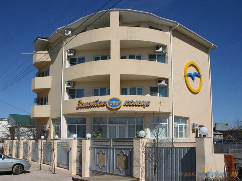 Двуспальные кровати, Вид на море, Балкон, Душ в номере, Туалет в номере, Умывальник, Полотенца включены, Смена постельного белья, Холодильник, Сплит-система, Телевизор, Заказ блюд и напитков в номерГостевой дом "Золотое кольцо" представляет собой четырехэтажное здание с уютным тихим двором и предлагает номера категории "люкс". Здание введено в эксплуатацию в 2003 году.